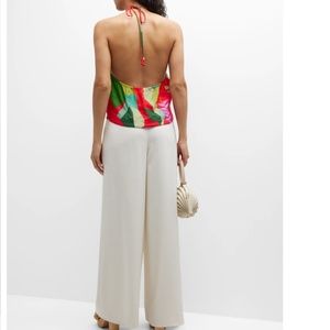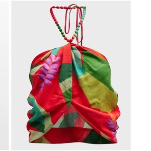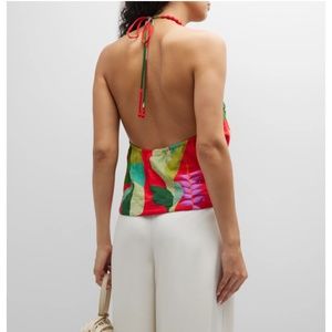 NWT $135 Farm Rio Heliconia Halter Crop Top in Heliconia Red - size X-Large!