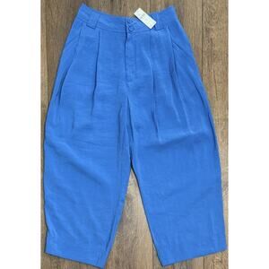 NWT $138 By Anthropologie Cropped Pleated Trousers Pants Blue Light Weight sz 4