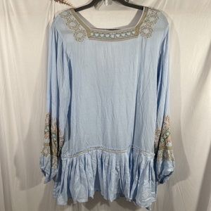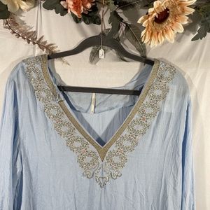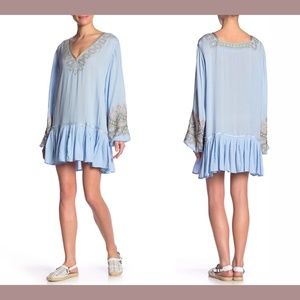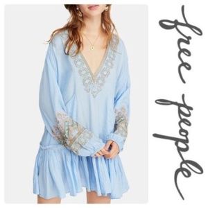 NWT $148โ Free People [ XS ] Wild One Embroidered Mini Dress in Blue Skies