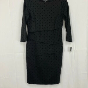 NWT $148 Tahari Women's Black Polka Dot Layered Dress Size 4