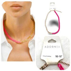 NWT Adornia 14K Gold Plate Two-Tone Neon Curb Chain Necklace. adjustable Length 16"-18"