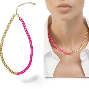 NWT 14K Gold Plate Two-Tone Neon Curb Chain Necklace