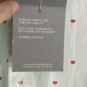 NWT 14th & Union Red 👄 Button Down White Shirt Trim Fit Men Small 14-14.5”