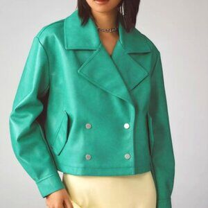 NWT $160 ANTHROPOLOGIE Avec Les Filles Faux-Leather Cropped Peacoat XS