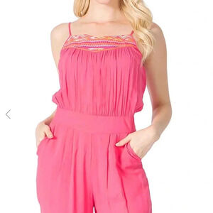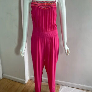 NWT $160 Bcbg Max Azria Bright Neon Pink Embroidered Sleeveless Jumpsuit Size M