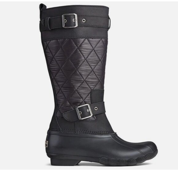 Sperry Saltwater Tall Nylon Quilted Black Rain Duck Boots