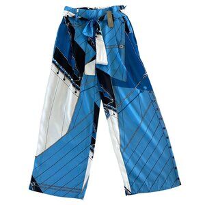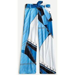 NWT $168 J. Crew SZ 2 Tie Waist Wide Leg Ankle Pants Blue White Regatta Print