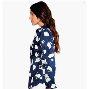 NWT $168 Nic + Zoe Womens Mosaic Blues Cotton Blend Button Down Blouse