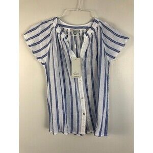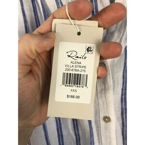 NWT! $168 Rails Alena Linen XXS Top Blue Villa Stripe Coastal Beachy Boho