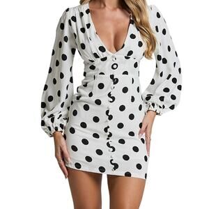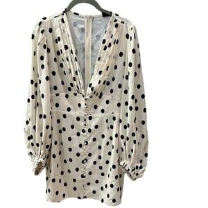NWT $169 ANTHROPOLOGIE O.P.T. Robin polka dot mini dress L ivory black
