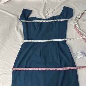 NWT $178 Dress the Population [ Medium ] Bailey Off Shoulder Bodycon Dress Blue