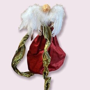 NWT 18” Christmas tree topper angel decor shimmery bows red green gold