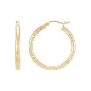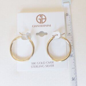NWT 18K GP Sterling Silver Polished Tube Hoop Earrings 30mm x 3mm