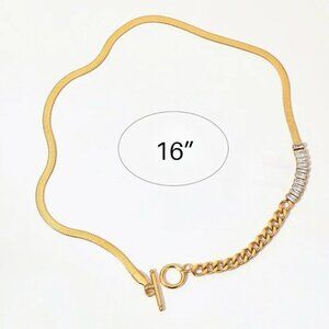 NWT 18K Gold Plated CZ Links Herringbone Chain Necklace Toggle Clasp