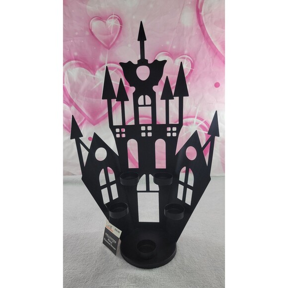Up for sale is a Brand New Black Metal Haunted House Tealight Candle Holder. This item is brand new with tags. It has 5 tealight holders.