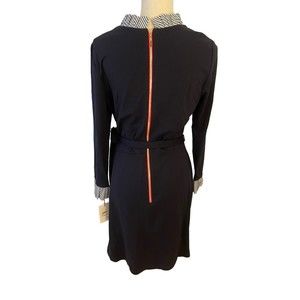 The knee-length dress comes in size 12 and features a belted waist, adding a touch of business style to the outfit. It's suitable for all seasons, making it a versatile addition to your closet. This dress is brand new with tags and is ready to be worn for any occasion.