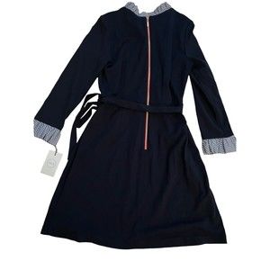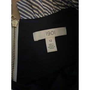 This NWT 1901 shirt dress is perfect for any professional or casual occasion. With a solid blue color and a built-in stripe collar, it's a great addition to any wardrobe. The dress has 3/4 flared sleeves, a round neck, and a zip closure. It's made of a combination of nylon, spandex, and rayon, with a cotton fabric type.