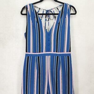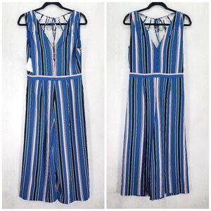 NWT 1901 Nordstrom Size M Striped Crop Pant Jumpsuit Playsuit Blue and White