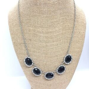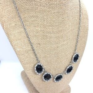 NWT 1928 BLACK CABOCHON RHINESTONE SILVER TONE NECKLACE GUNMETAL STATION ELEGANT