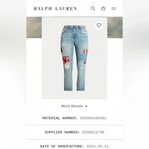 NWT $195 Lauren Ralph Lauren Women Plus Size Patchwork Relaxed Tapered Jeans 20W