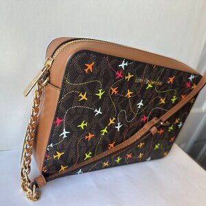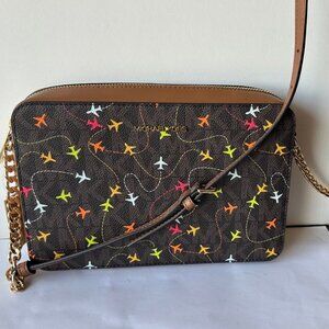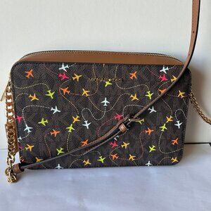 NWT $198 MICHAEL KORS JET SET BROWN MULTI EAST WEST AIRPLANES CROSSBODY BAG