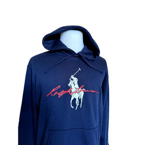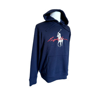 NWT $198 Polo Ralph Lauren Signature Big Pony Long Sleeve Fleece Hoodie Navy L