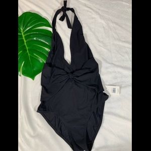 NWT $198 Tory Burch Tie Front Halter One-Piece Swimsuit Black [SZ Small ]