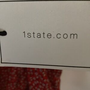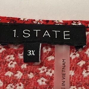 NWT 1. STATE WO SIZE 3X PEASANT TOP FRONT TIE AT HEM RED WITH SMALL FLORAL PRINT LENGTH MEASURES APPROX 27” FROM SHOULDER TO HEM SLEEVES MEASURE APPROX 16@ CHEST MEASURES APPROX 26” FROM SIDE TO SIDE NEW