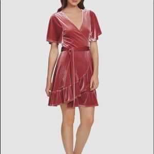 NWT 1.State Flutter Sleeve Stretch Pink Velvet Wrap Tie