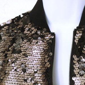 NWT 1-State Glam Rock Metallic Flip Sequin Bomber Jacket -XS Ringer Bronze Black