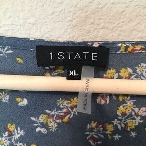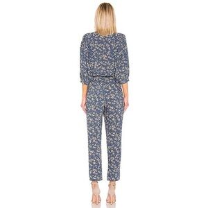 New with tags. 1.State Retro Bloom Wrap Jumpsuit in Antique Blue. Sold at Revolve. Surplice neckline. Elasticized waist. Floral print. Bouffant sleeves. Size XL. MSRP: $129