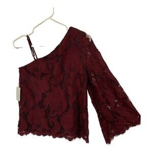 NWT 1.State | The Curator Women’s One Shoulder Lace Deep Claret Top XS