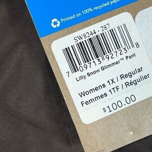 NWT 1X Columbia Lilly Snow Glimmer Brown OmniShield Lined Fleece Snow Pants Warm
