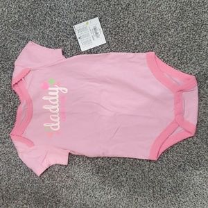 Super cute pink Jumping Beans Daddy Loves Me short sleeve onesie with button closure on bottom.