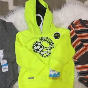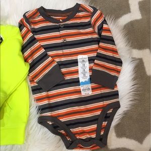 NWT Long Sleeve Bodysuit Charcoal Grey. Dri-Fit Hoodie that glows in the dark 12M. Long Sleeve striped body suite 12M grey/Orange