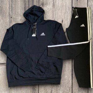 NWT 2 PC ADIDAS M HOODIE AND LEGGINGS 3 STRIPE MATCHING SET BLACK WHITE BUNDLE