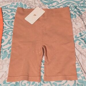 NWT 2 Pairs Fabletics Womens M High-waisted Seamless Rib Shorts Orange Brown