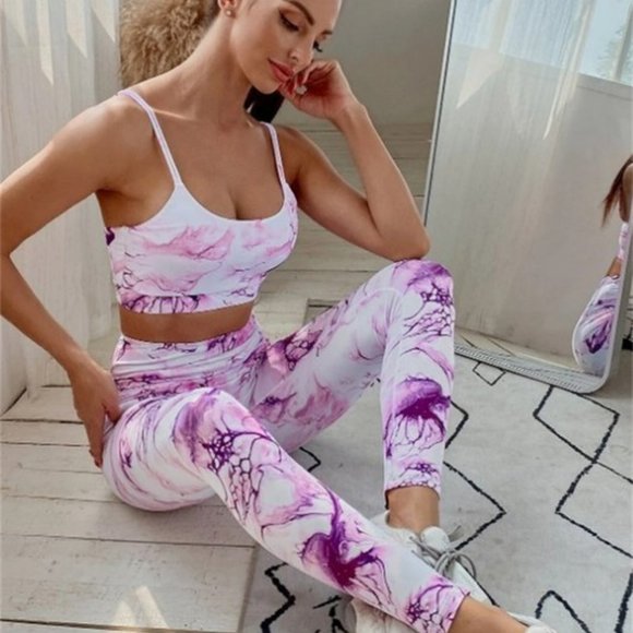 NWT 2 Piece Seamless Yoga Set 7/8 Legging and Bralette Lavender and White S/M/L