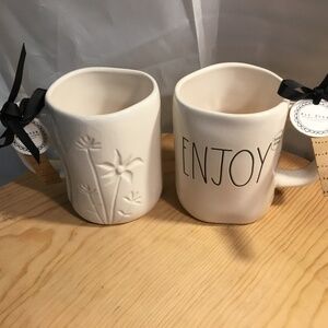 Rae Dunn Farmhouse Style ENJOY Double Sided Mug With Floral Detail NEW with tags, set of two mugs.