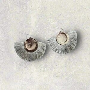NWT 2” Statement Fan Fringe Tassel Cream - Gold Dangle Pierced Earrings