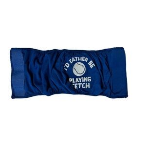 One green with blue trim and one blue with “I’d Rather Be Playing Fetch “