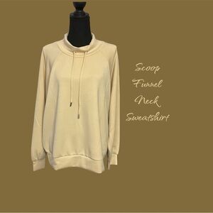 These smooth as butter sweatshirts are lightweight. The cream colored is by Scoop and has a funnel neck with drawstring. The chocolate brown is a Members Mark Luxe Crew. Both are size XL. These are so soft and would be perfect to wear sitting next to a fire on the beach. Both are new with tags.