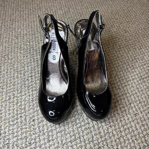 NWT 2000s vintage y2k Steve Madden black shiny chunky wedge ankle boot heels