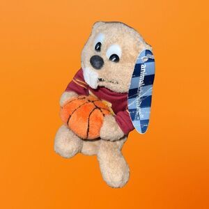 NWT 2004 MN Gophers Bucky Beaver Mascot With Basketball Plush Stuffed Animal