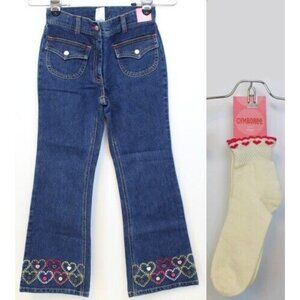 NWT 2005 Gymboree Tyrolean Lure Jeans Set sz 9 Socks Heart Button Girls Flared
