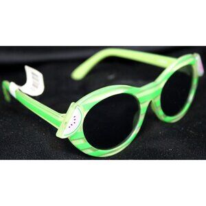 Plastic 2 tone green striped sunglasses with little watermelons on the side arms