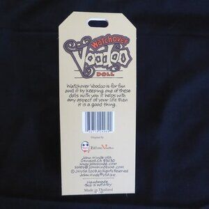 New, in package, Watcher Voodoo Doll brand, Voodoo doll keychain. This is the “Equalizer, To Help you get even when all else fails.” It has an attached gold jingle bell. He sports an earring, scars and is holding his heart.