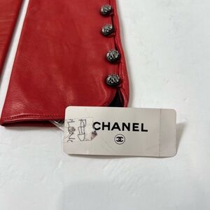 NWT $2,010 CHANEL Red Leather 7 2009A Opera Button Gloves