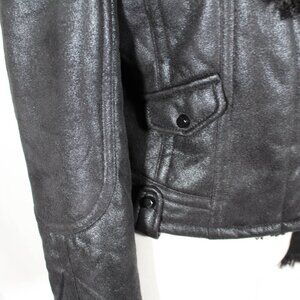 NWT 2014 Penny Lane Style Black Shag Moto Coat | Glam Rocker Goth Chic Jacket |