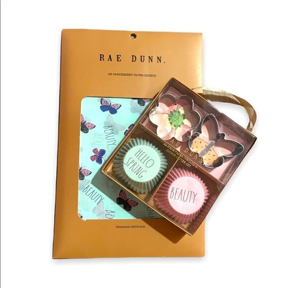 NWT 2022 Rae Dunn Spring Butterfly Beauty Baking Cups Cookie Cutters & Parchment